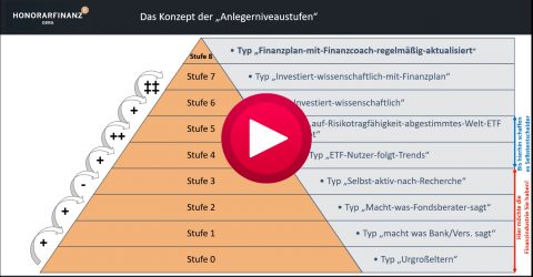 Wissen ist Macht – auch und besodern in der Finanzanlage. Im Video erkläre ich in 5 Minuten das Konzept der Anlegerniveaustufen und der Auswirkungen auf die Renditehöhe. Schauen Sie gerne, auf welcher Stufe Sie sich befinden und welche Ihre Wunschstufe wäre.